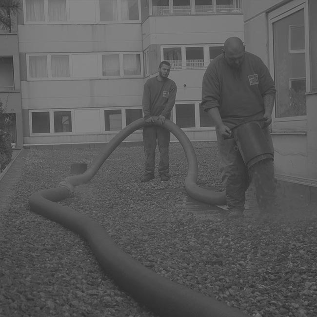 365 days a year, 24 hours a day - explore how this commitment and flexibility in implementing your tasks pays off in all our areas of expertise: roof gravelling, removal of roof gravel, mobile suction dredgers, industrial cleaning, and industrial service. Our team of young employees and personnel with years of experience is complemented by our “know-how” in modernising our technical equipment, whereby, in the automotive sector, we rely on, and collaborate with well-known manufacturers. The constant training of our team in the core areas of "mobile suction dredgers", "roof gravelling", "roof gravel removal" and "industrial service" further improve the level of professional expertise and underlines our high quality standards.